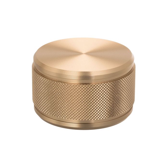 Knopp 'Radio' tillverkad av Zamak, Borstad Mässing med lättrad yta.