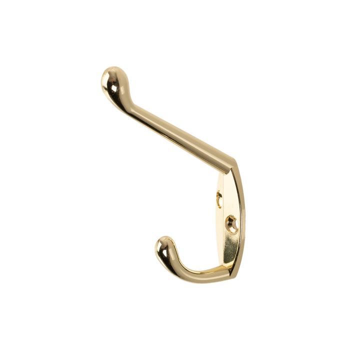 Krok / Klädhängare 'Enzen' av Zamak, Blank Mässing. Fästes med två skruvar framifrån.