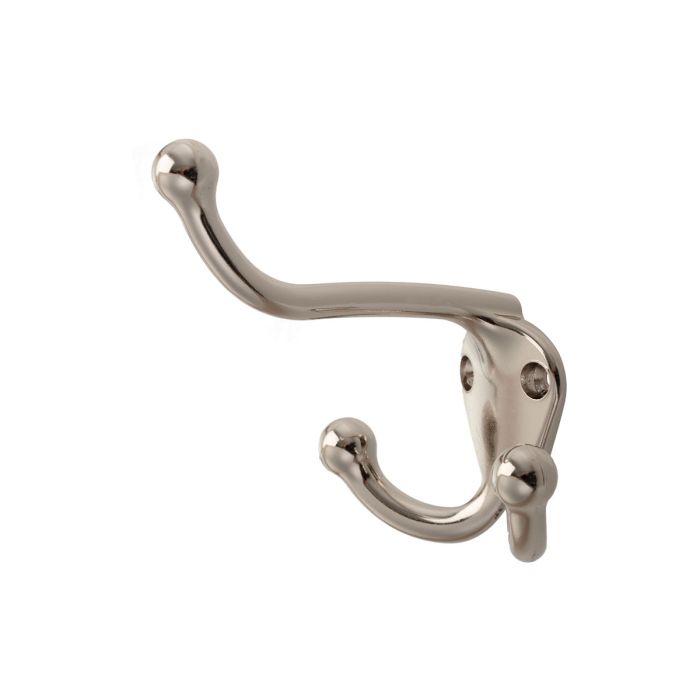 Dubbel väggkrok och klädhängare 'Reit' av Zamak, Blank Nickel. Fästes med två skruvar framifrån.