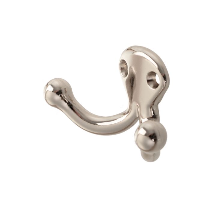Krok / Klädhängare 'Rysum' av Zamak, Blank Nickel. Fästes med två skruvar framifrån.